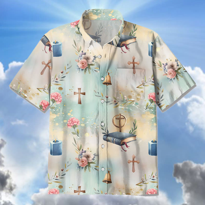 The Light Flower Christian Print Short Sleeve Camp-collar Shirt