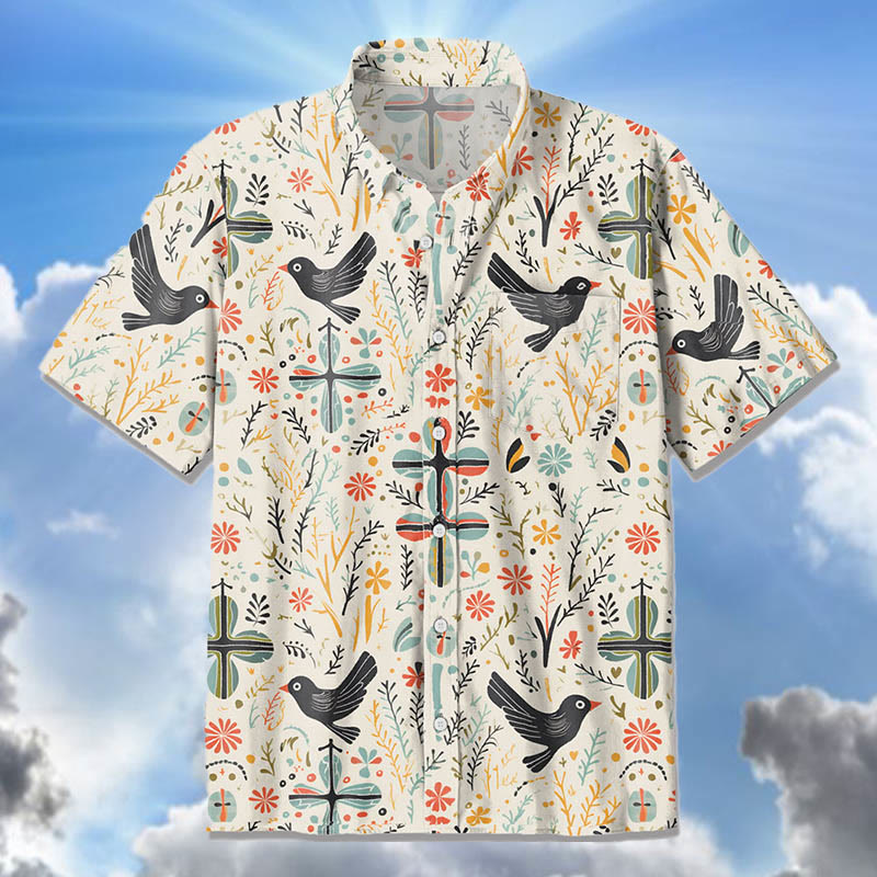 Dove Cross Boho Christian Printed Hawaiian Shirt