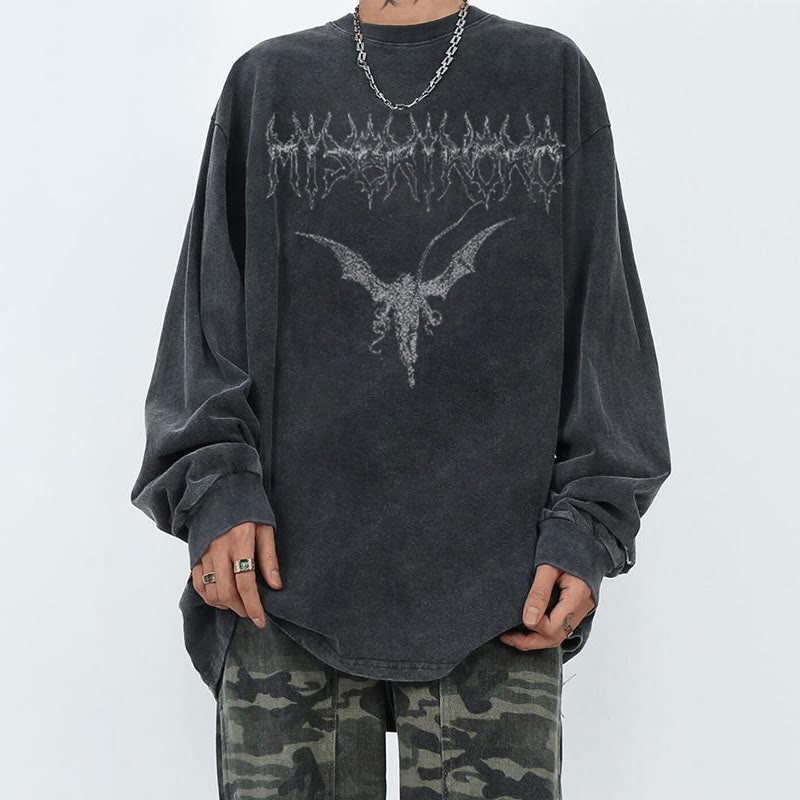 Dark Style Printed Acid washed Long Sleeves T-shirt