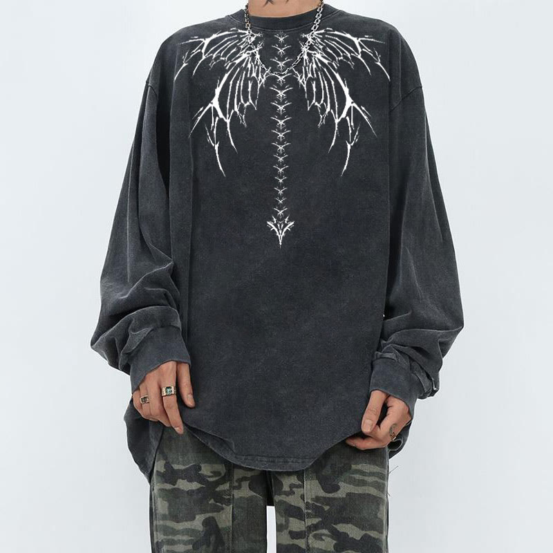 Wings Printed Acid washed Long Sleeves T-shirt