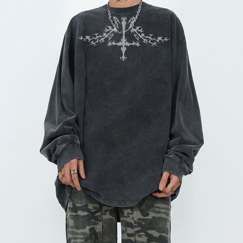 Cross Printed Acid washed Long Sleeves T-shirt