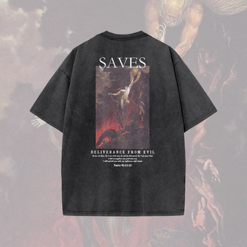 Deliverance From Evil Print Acid Washed T-shirt