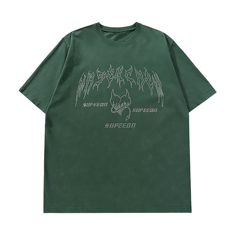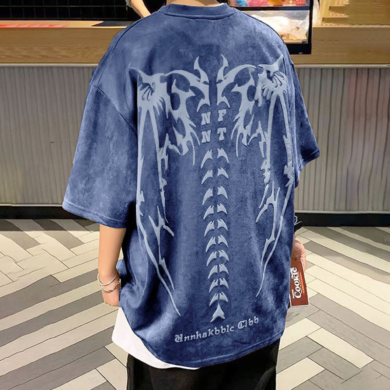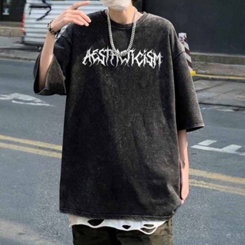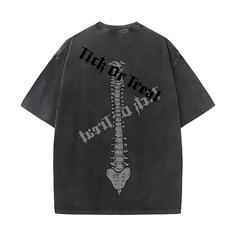 Men's Skeleton Letter Print Acid Washed T-shirt