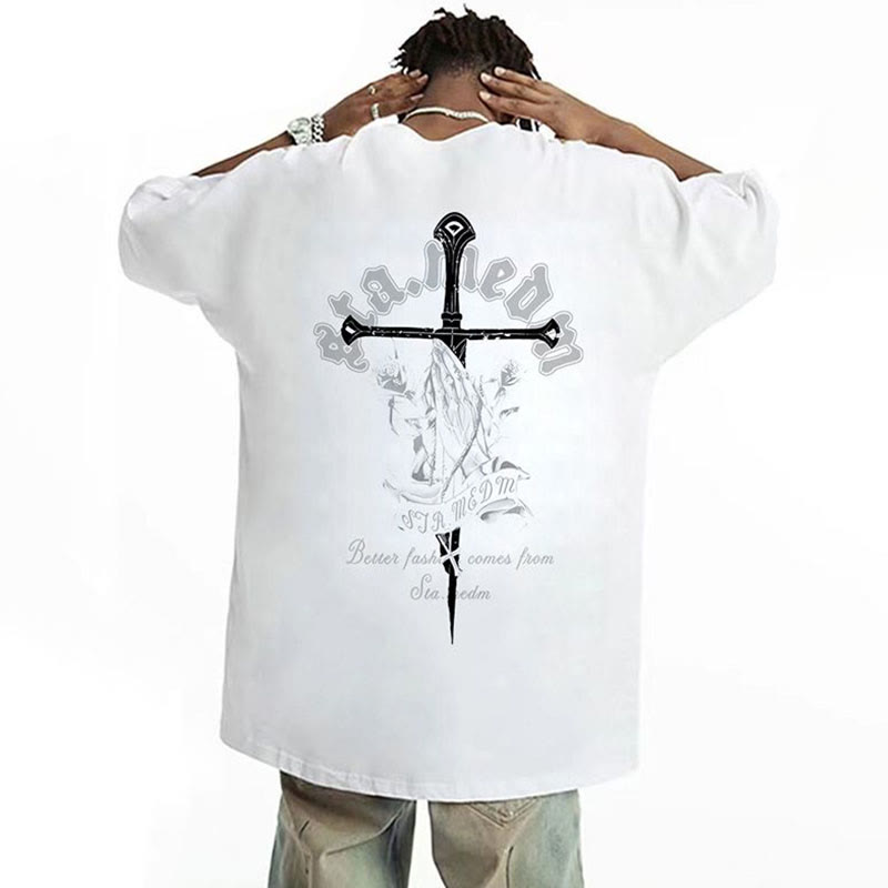 Men's Cross Prayer Print Short Sleeve T-shirt