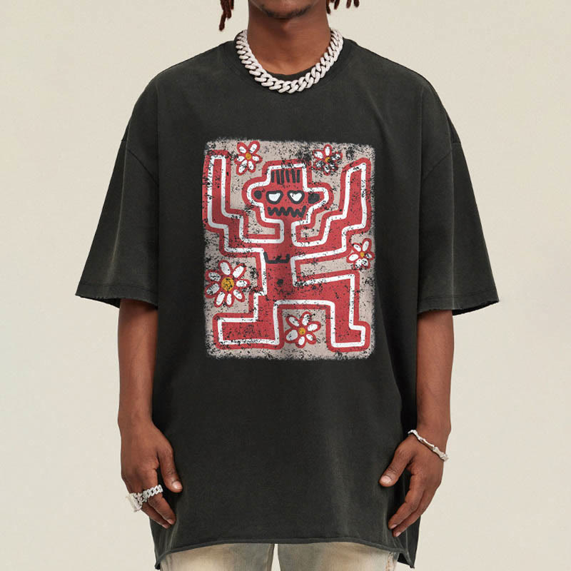 Men's Vintage Short Sleeve Graphic Print Acid Washed T-shirt