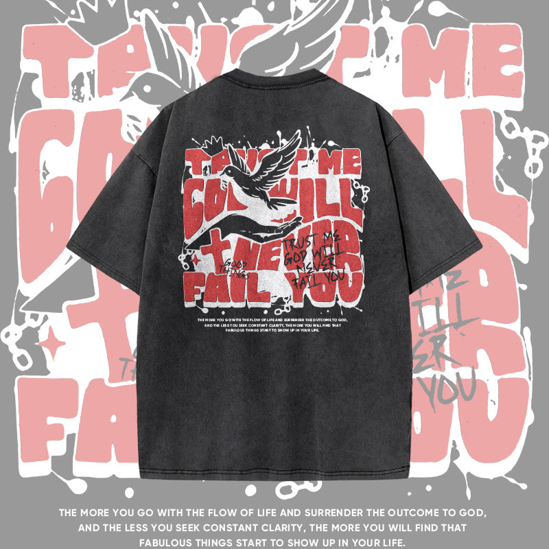 Trust Me God Will Never Fail You Print Acid Washed T-shirt
