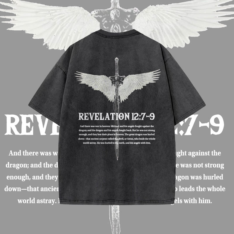 Revelation 12:7-9 Print Acid Washed T-shirt
