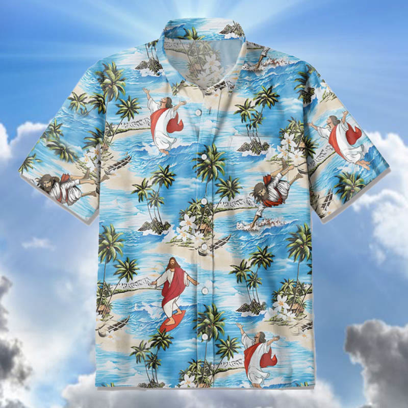 Jesus Goes Surfing Surfing Lover Printed Hawaiian Shirt