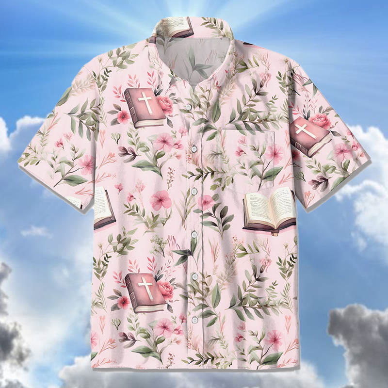 Pink Bible Flower Christian Printed Hawaiian Shirt