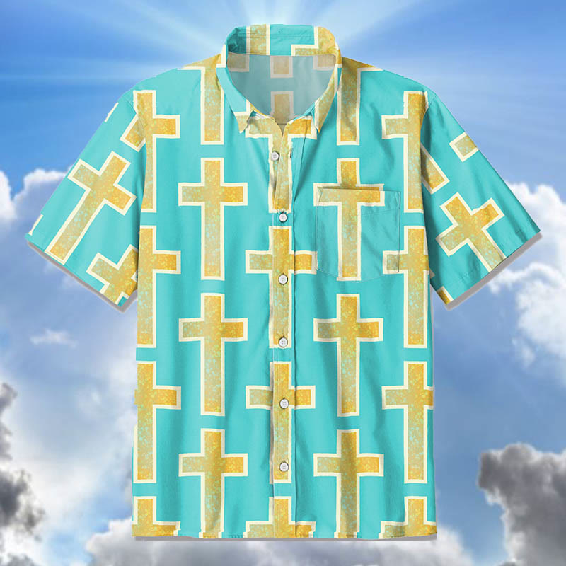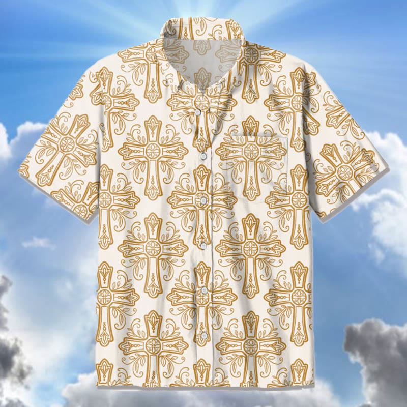 Yellow Flower Cross Christian Printed Hawaiian Shirt