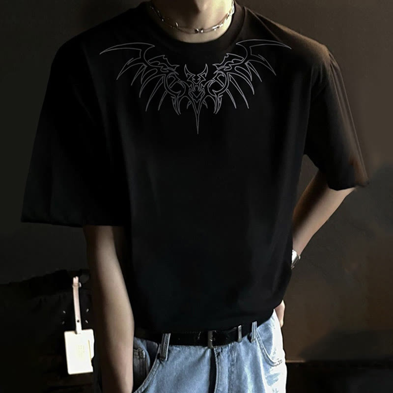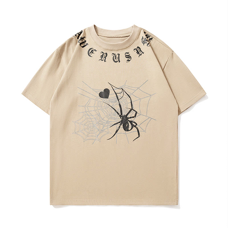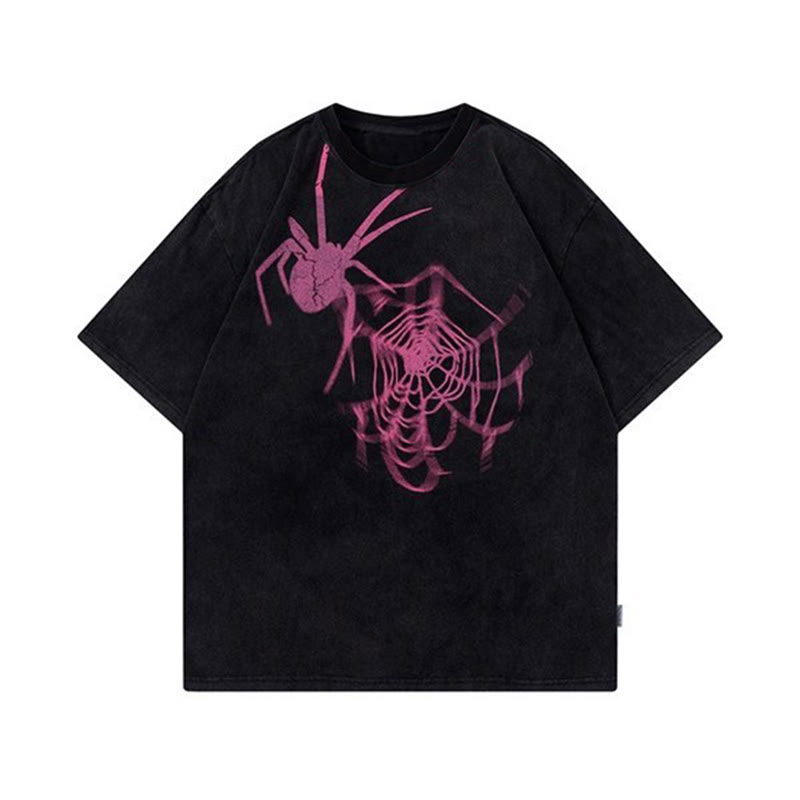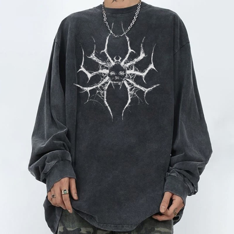 Spider Print Loose Casual Black Printed Washed Long Sleeves T-shirt
