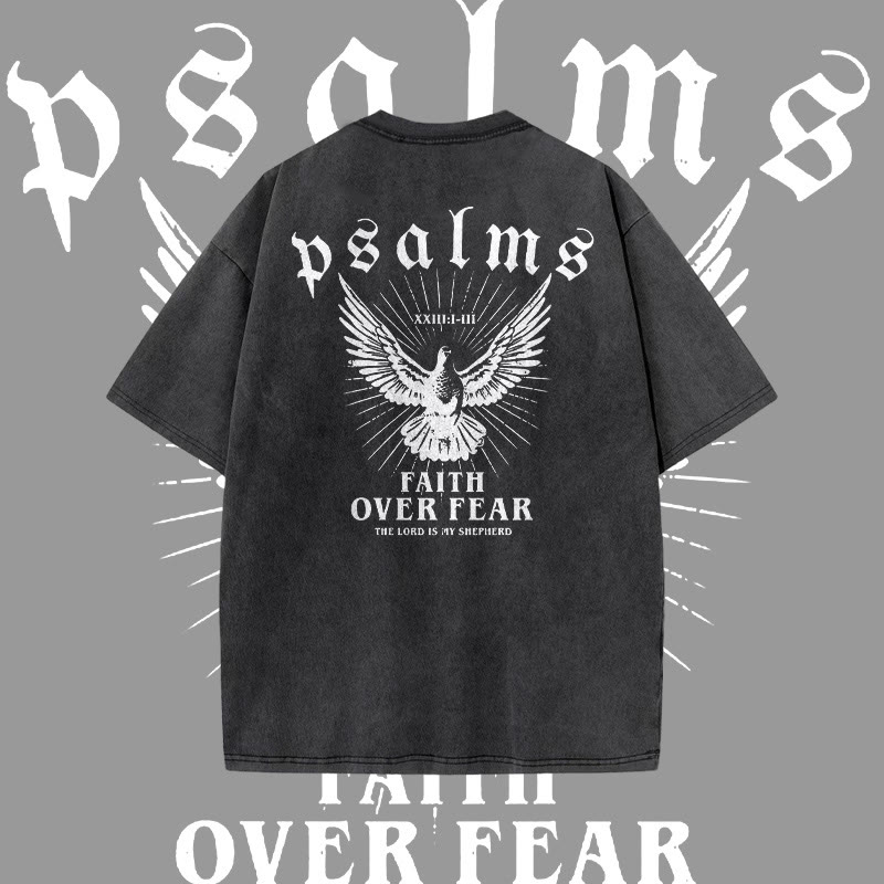 Faith Over Fear The Lord Is My Shepherd Print Acid Washed Unisex T-shirt
