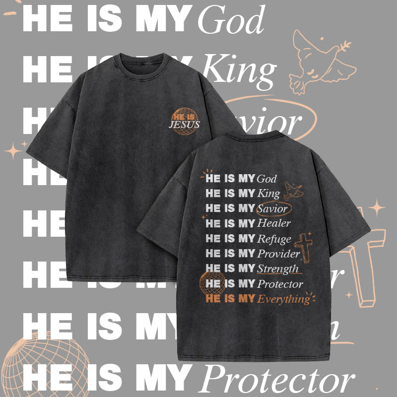 He Is Jesus He Is My Everything Print Acid Washed Unisex T-shirt
