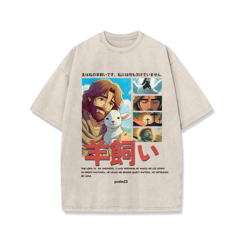 The Lord Is My Shepherd Chirstian Print Acid Washed Unisex T-shirt