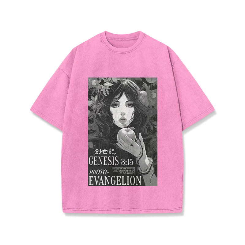 Retro Bible Print Genesis Evangelion Christian Acid Washed Unisex T-shirt