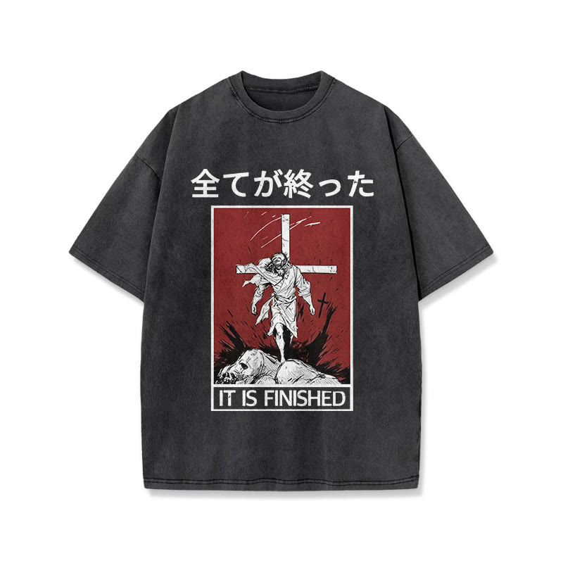 It Is Finished Christian Print Acid Washed Unisex T-shirt