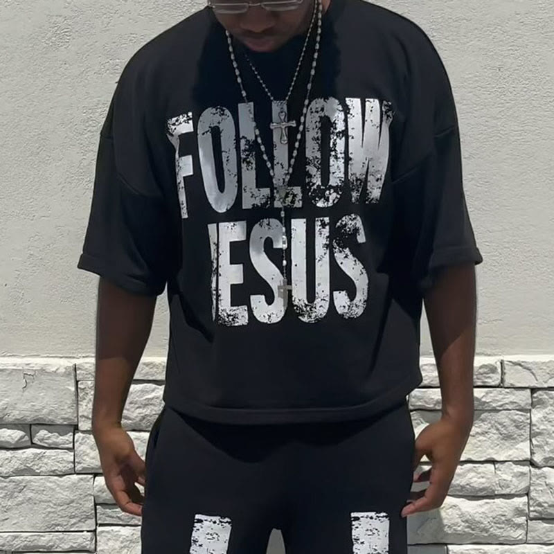 Men's Follow Jesus Classic Dark Grey Plaid Print Short Sleeve Shirt