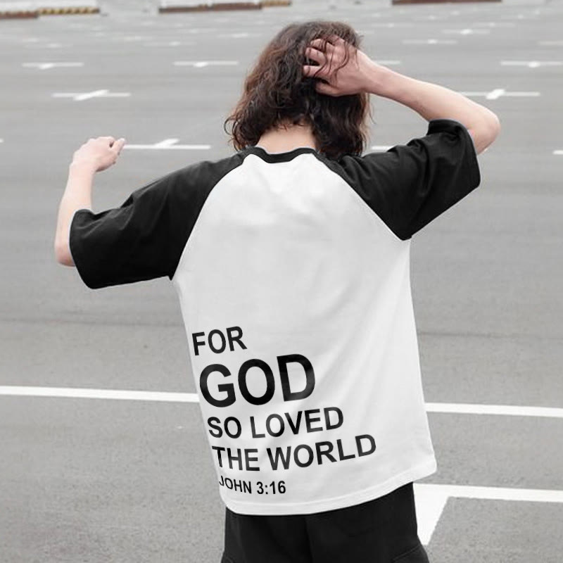 For God So Loved The World Print Raglan Sleeve T-shirt
