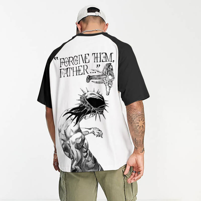 Forgive Them,Father Print Raglan Sleeve T-shirt
