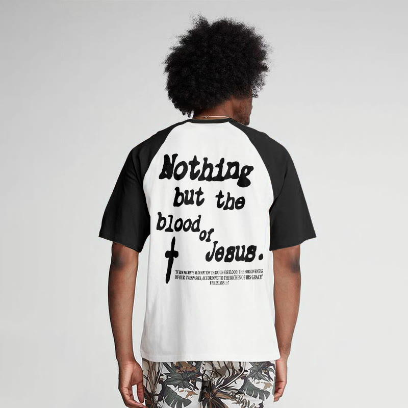 Nothing But Blood Of Jesus Print Raglan Sleeve T-shirt