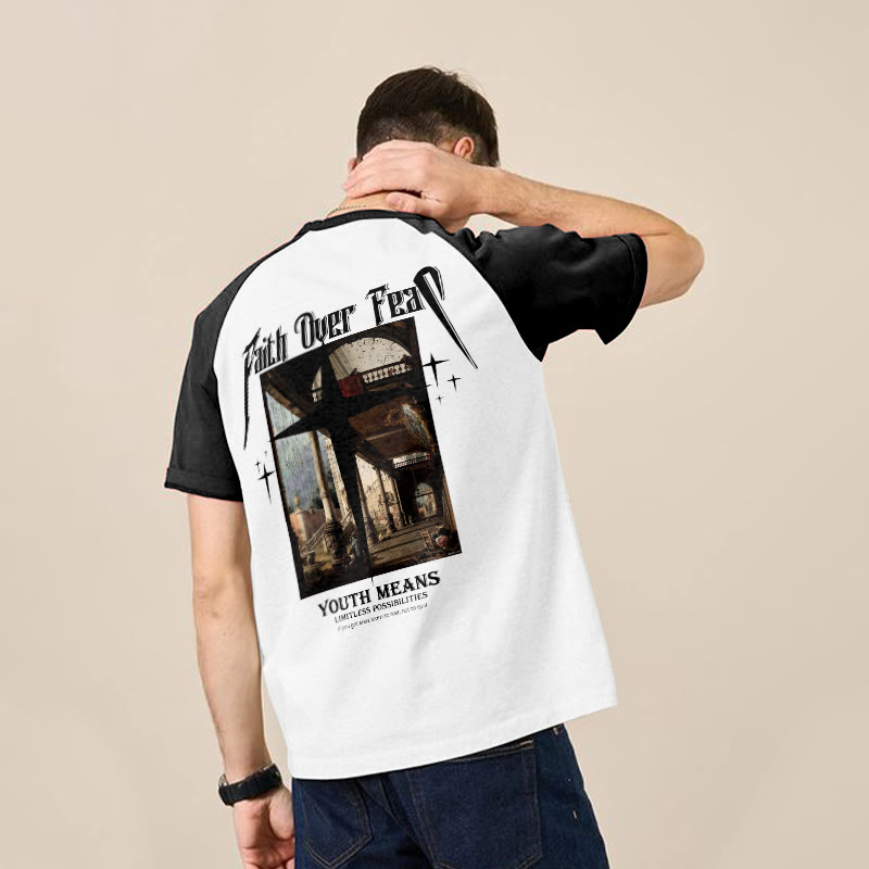 Faith Over Fear Oil Painting Print Raglan Sleeve T-shirt