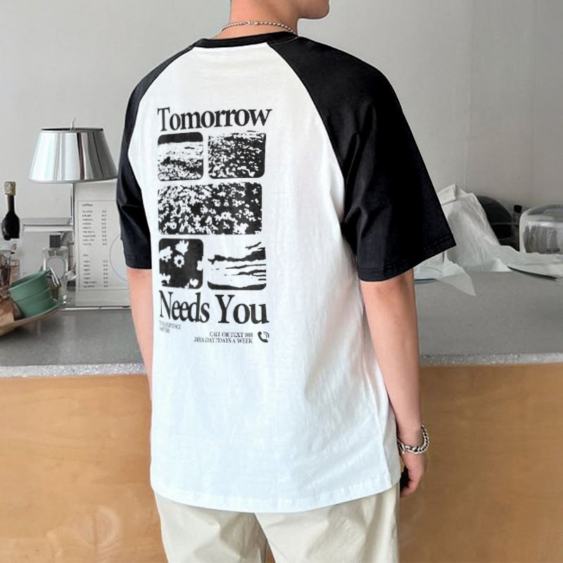 Tomorrow Needs You Print Raglan Sleeve T-shirt
