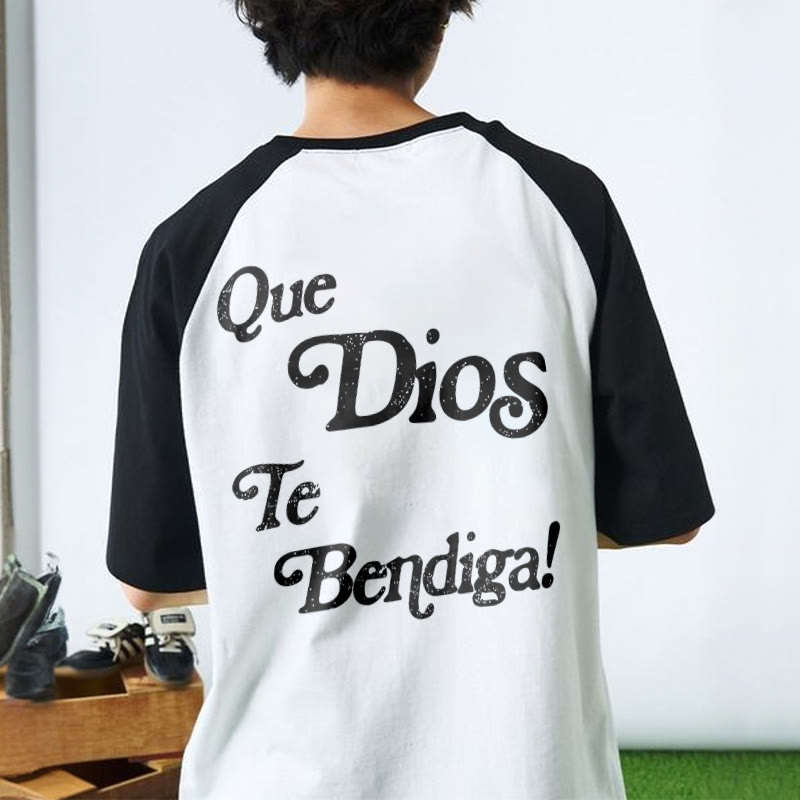 Que Dios Te Bendiga Print Raglan Sleeve T-shirt