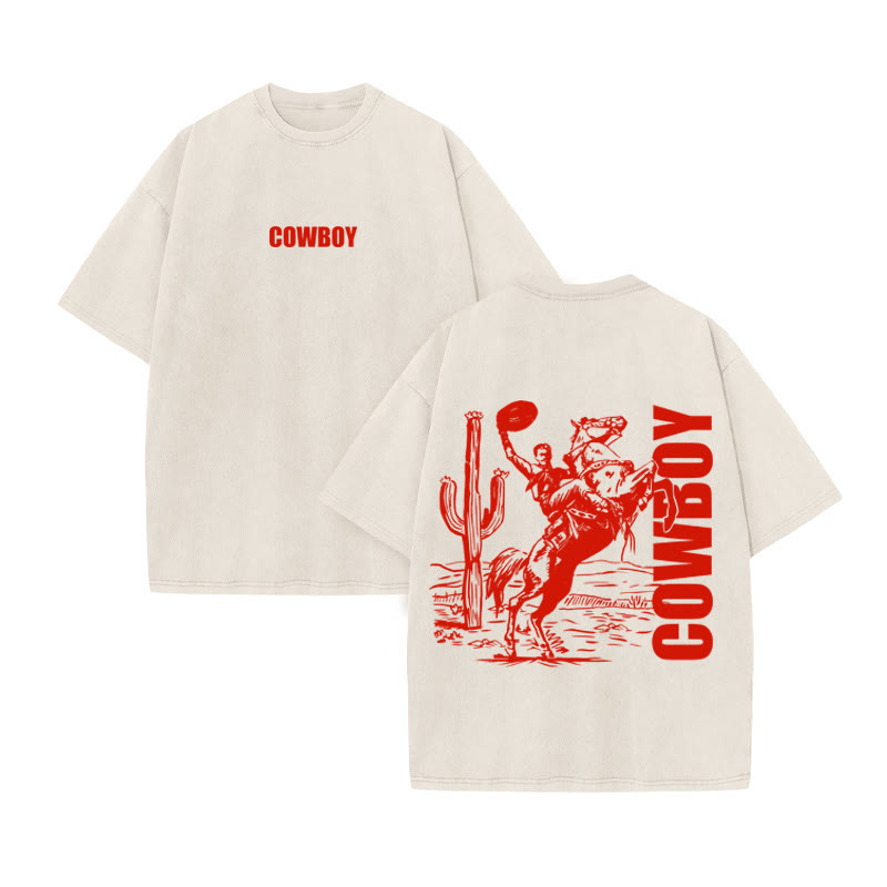 Unisex Cowboy Print Acid Washed T-shirt