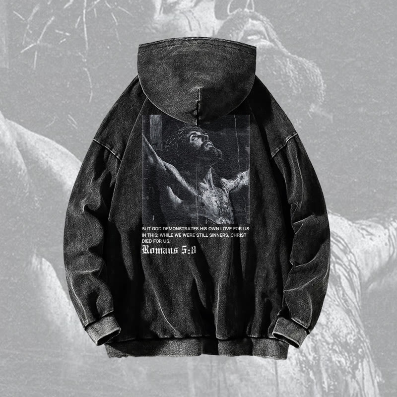 Romans 5:8 Print Acid Washed Hoodie