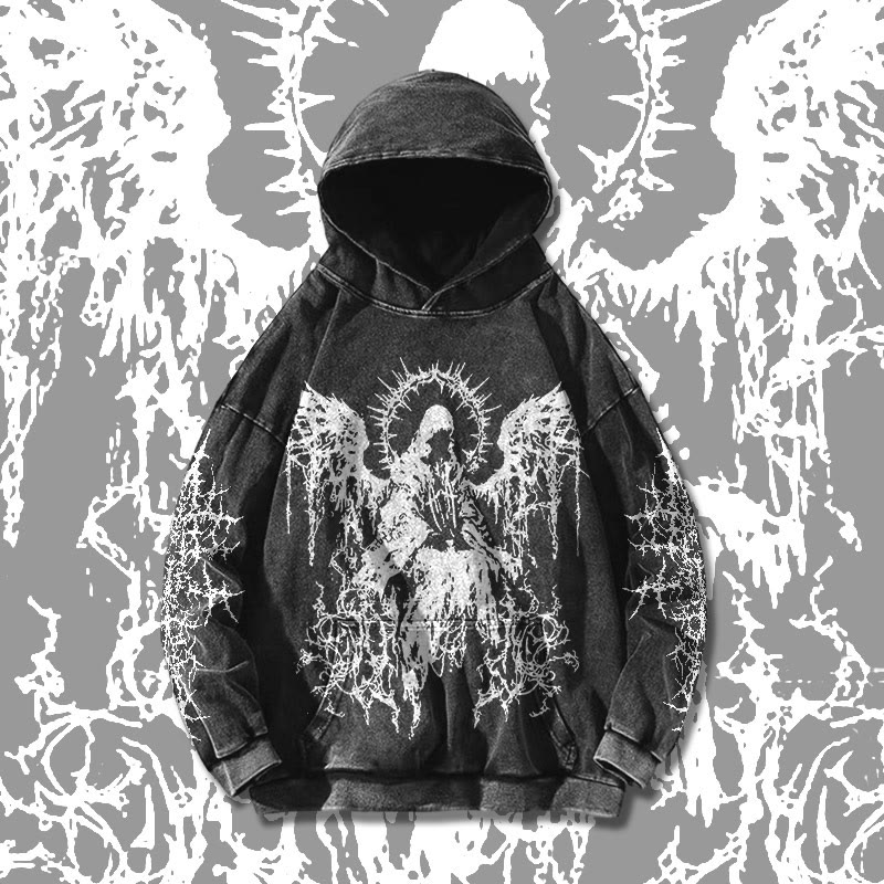 Unisex Vintage Angel Printed Washed Hoodie