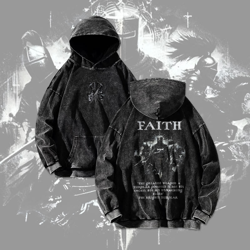 Faith The Knights Templar Printed Washed Hoodie