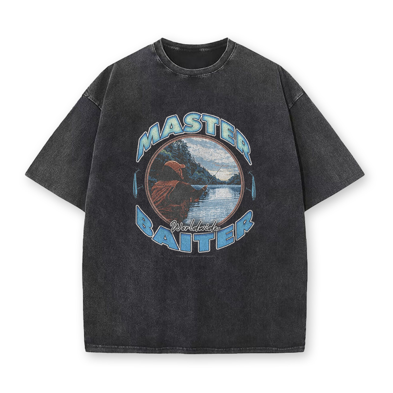 Vintage Heavyweight Streetwear MASTER BAITER Printed Acid Washed T-shirt