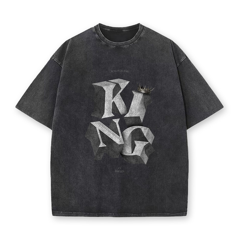 Jesus Is The King Of Kings Printed Washed T-shirt
