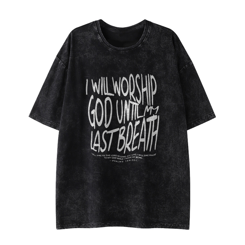 I Will Worship God Until My Last Breath Printed Washed T-shirt