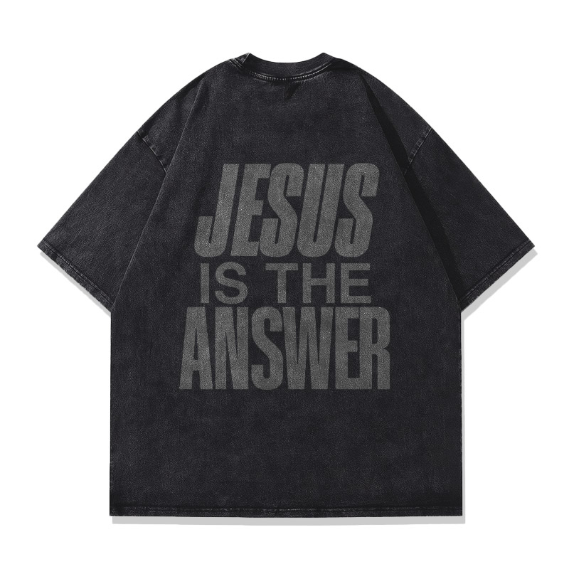 Vintage Jesus Is The Answer Printed Acid Washed T-shirt