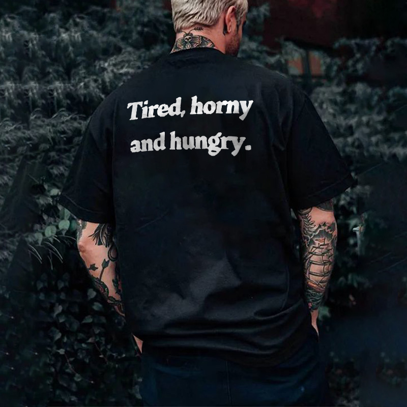 Tired, Horny And Hungry Print T-shirt