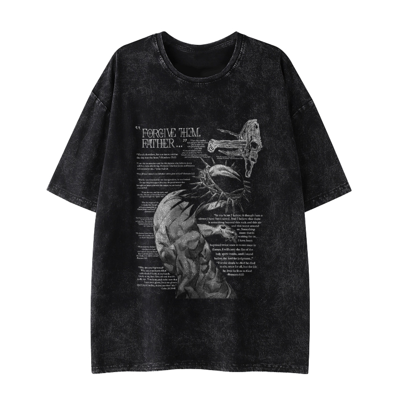 Forgive Them,Father Bible Verses Printed Washed T-shirt