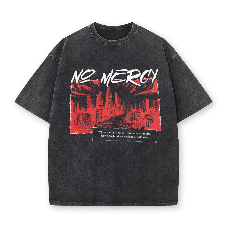 Vintage Heavyweight Streetwear No Mercy Printed Acid Washed T-shirt