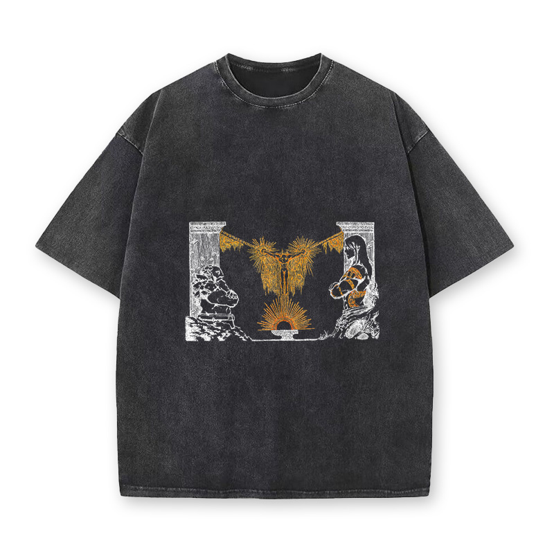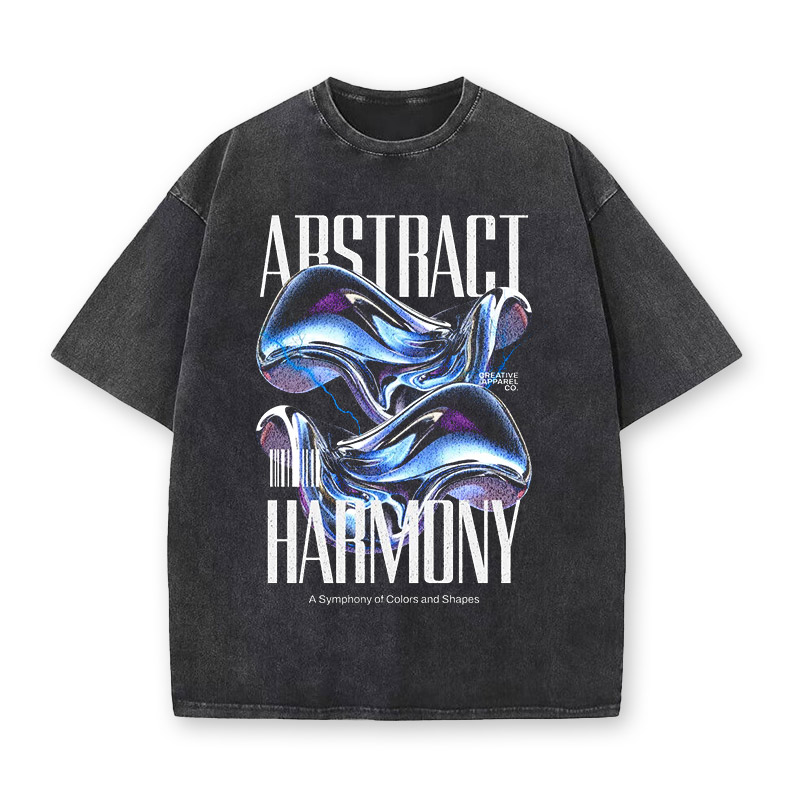Vintage Heavyweight Streetwear Abstract Harmony Printed Acid Washed T-shirt