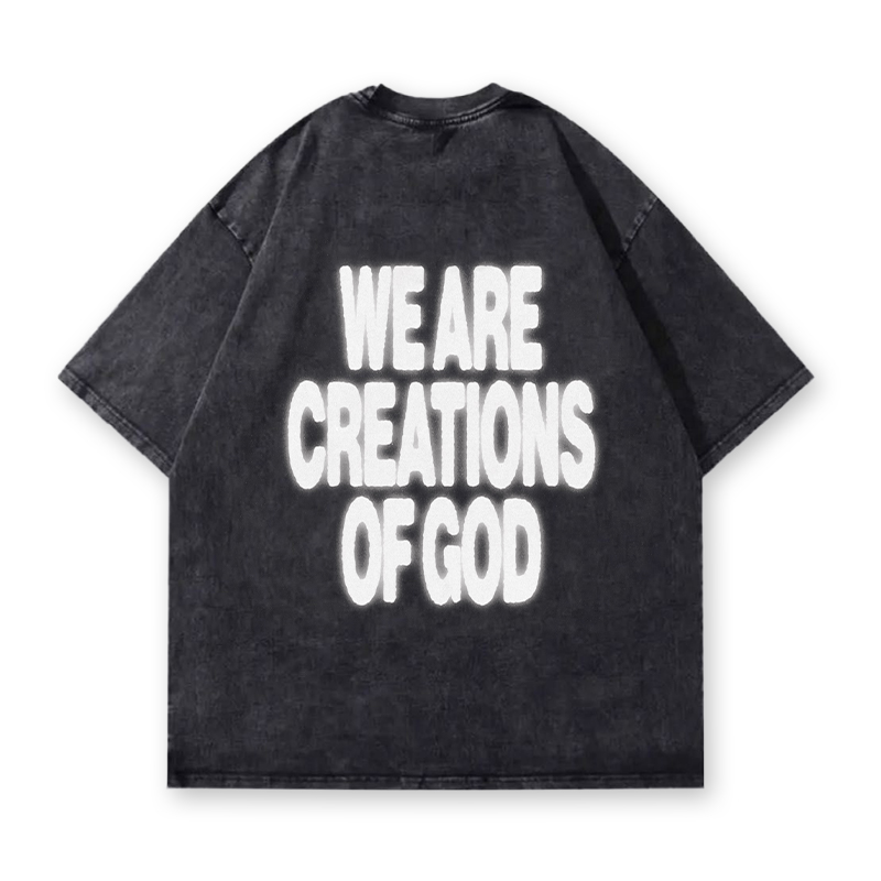 Vintage Heavyweight Streetwear We Are Creations Of God Printed Acid Washed T-shirt
