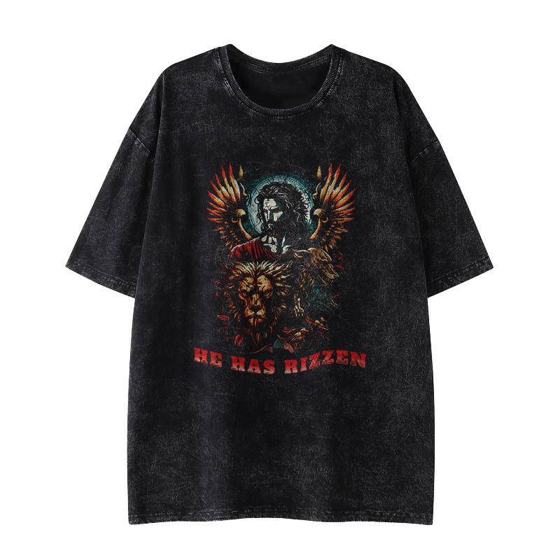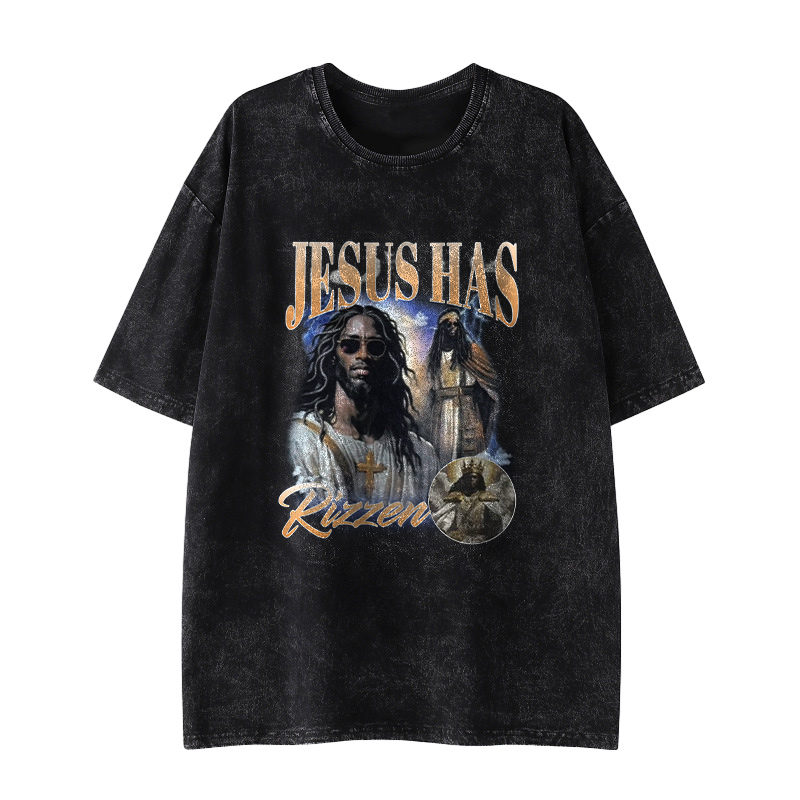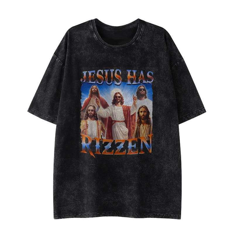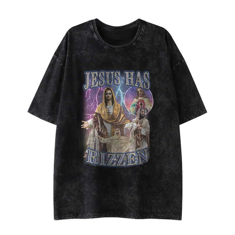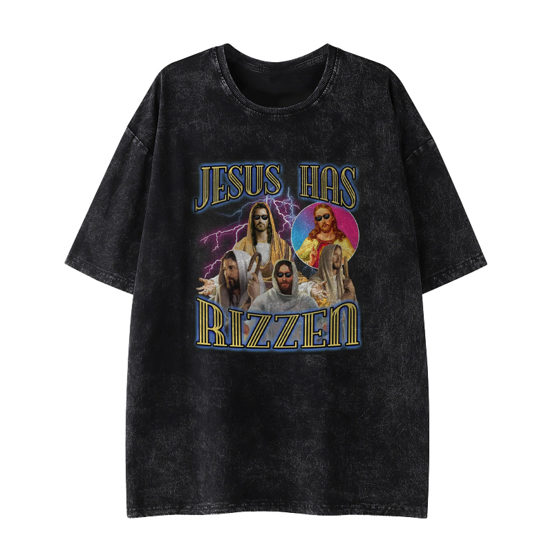 Jesus Has Rizzen Printed Washed Causal T-shirt