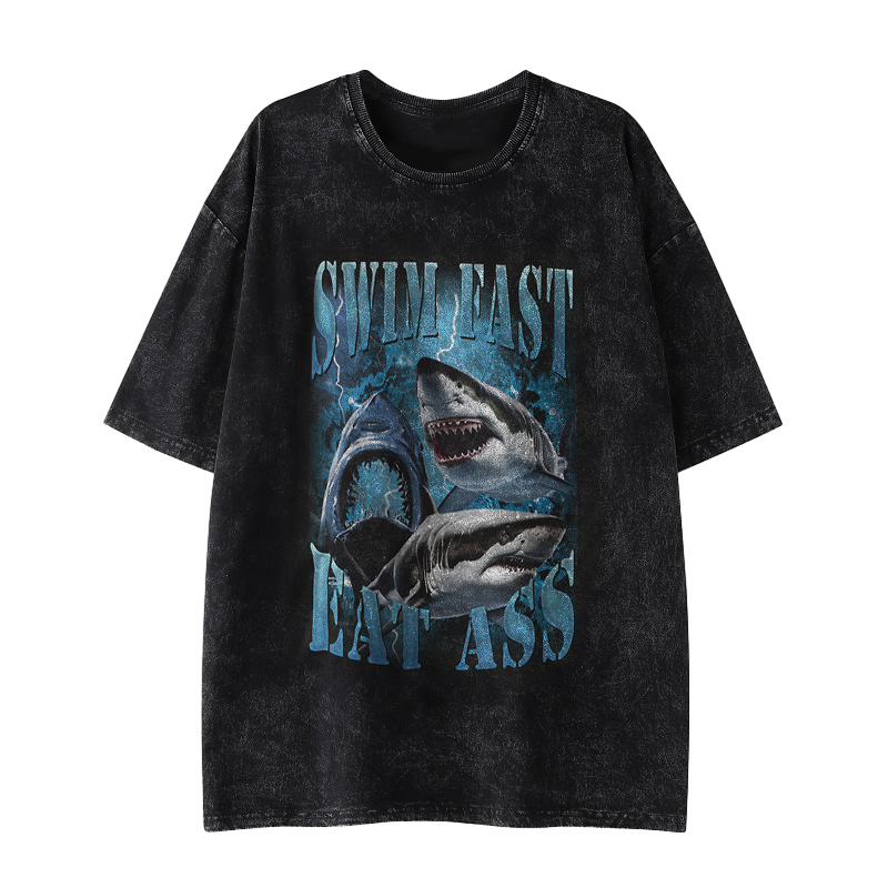 Swim Fast Eat Ass Printed Washed T-shirt
