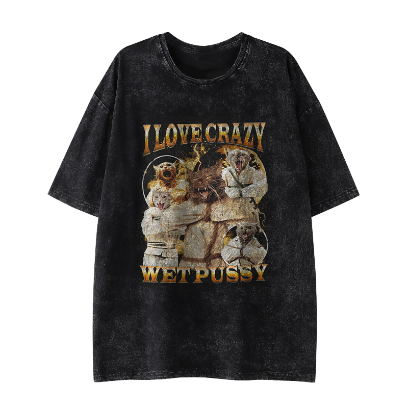 I Love Crazy Wet Pu**y Printed Washed T-shirt