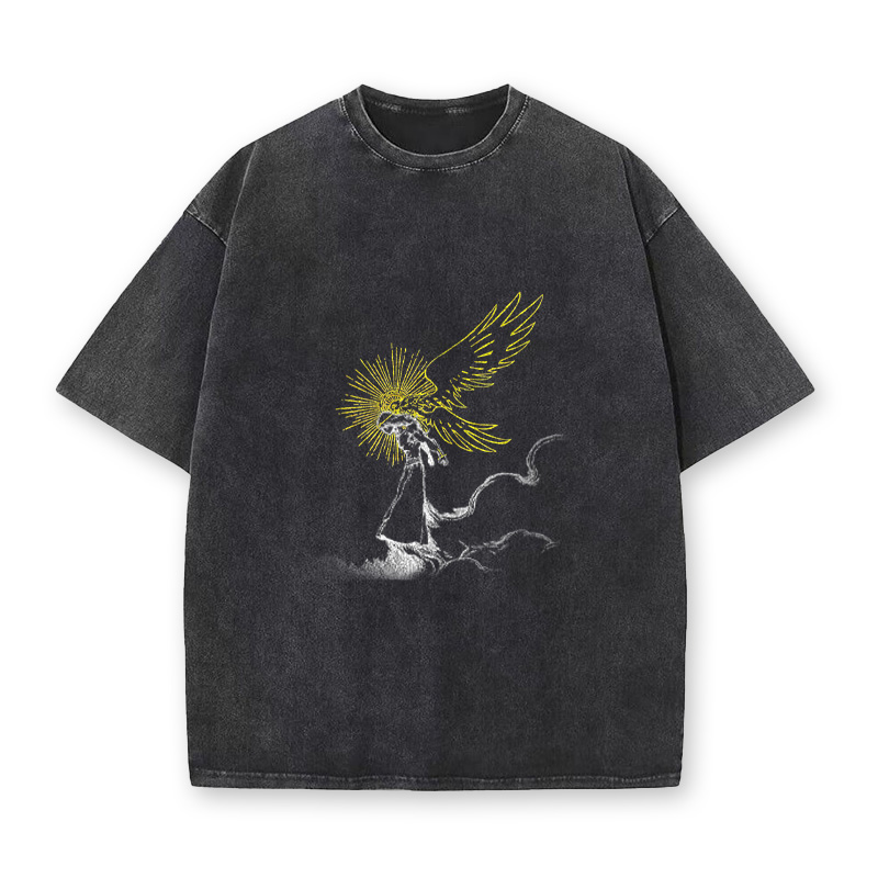Vintage Heavyweight Streetwear The Beast Of Angel Printed Acid Washed T-shirt