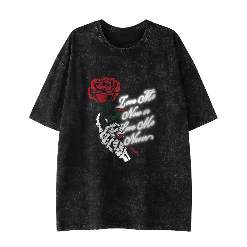 Love Me Now Or Love Me Never Print Acid Washed T-shirt