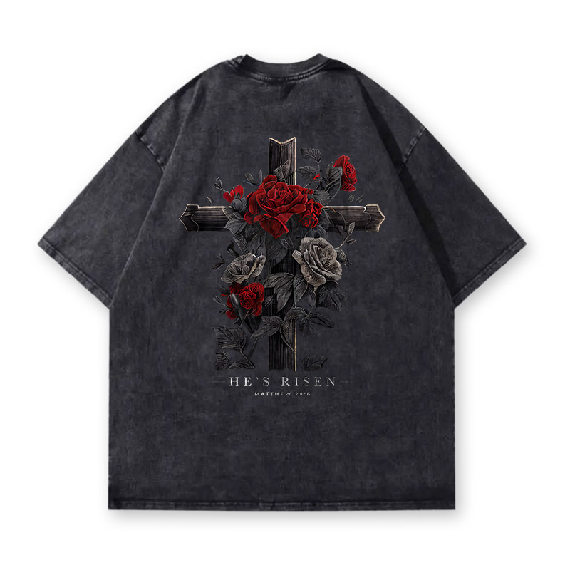 Vintage Heavyweight Theophany He's Risen Cross Printed Acid Washed T-shirt
