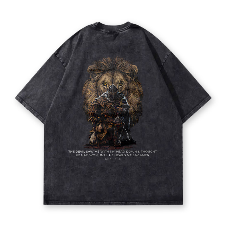 Vintage Heavyweight Theophany Knight Isaiah 41:10 Printed Acid Washed T-shirt