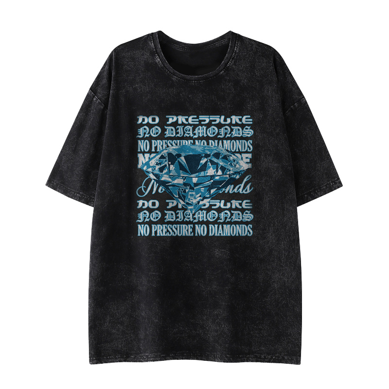 No Pressure No Diamonds Print Acid Washed T-shirt