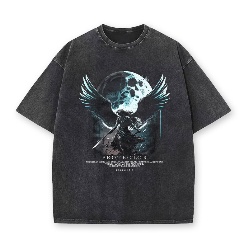 Vintage Heavyweight Theophany Protector Psalm 27:3 printed Acid Washed t-shirt