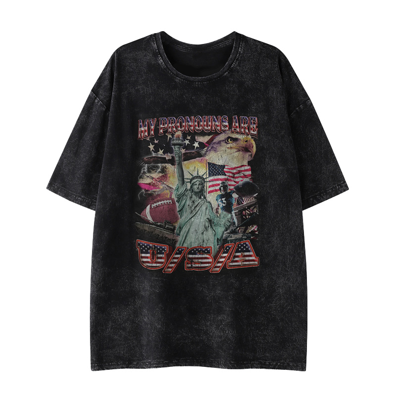 My Pronouns Are USA Print Acid Washed T-shirt